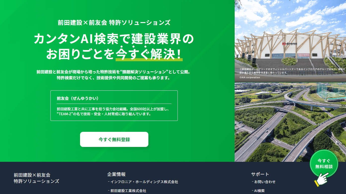 前田建設と前友会が現場から培った特許技術を”課題解決ソリューション”として公開。