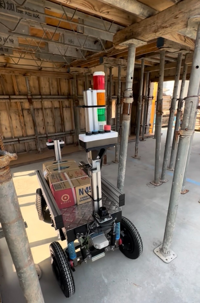固形化する前のコンクリートを合板や角材・単管パイプを用いた型枠に流し込み、建物の